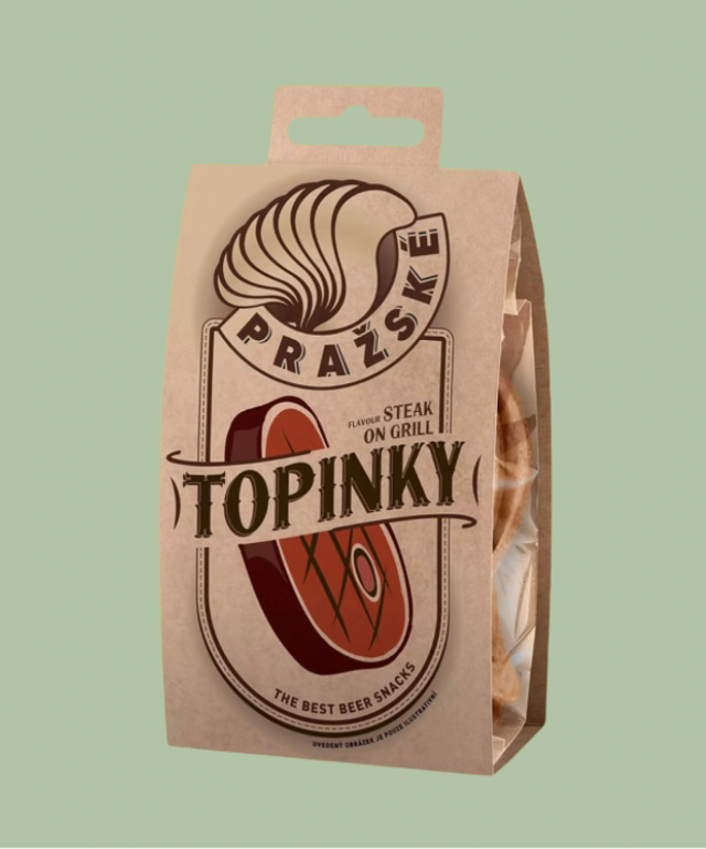 Topinky Steak Flavour. High Fiber Crispy Rye Bread. Perfect with a beer or any drink. Amazing with your favourite soup or in a salad to add intense crunch and flavour.